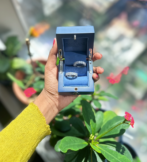 “My husband and I recently purchased our wedding rings from Modani Jewels, and we couldn't be happier with the experience. From start to finish, the staff was friendly, knowledgeable, and professional. They took the time to listen to our needs and preferences, and helped us find the perfect rings to symbolize our love and commitment to each other.