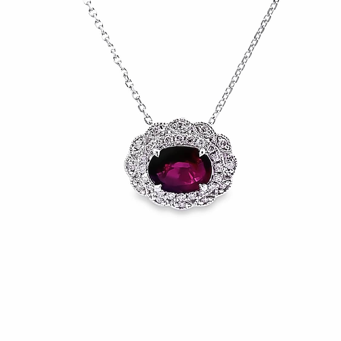 1.40ct Ruby Oval & 0.21ctw Pink Diamond 14K White Gold Necklace Length 18 in