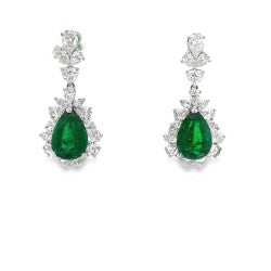 18KW EARRING EMERALD PEAR 12.14 CT. WHITE DIAMOND HS 0.74 CT.,WHITE DIAMOND MARQUISE 0.67 CT.,WHITE DIAMOND (MIX SHAPE) 4.62 CT.,WHITE DIAMOND ROUND 0.67 CT.