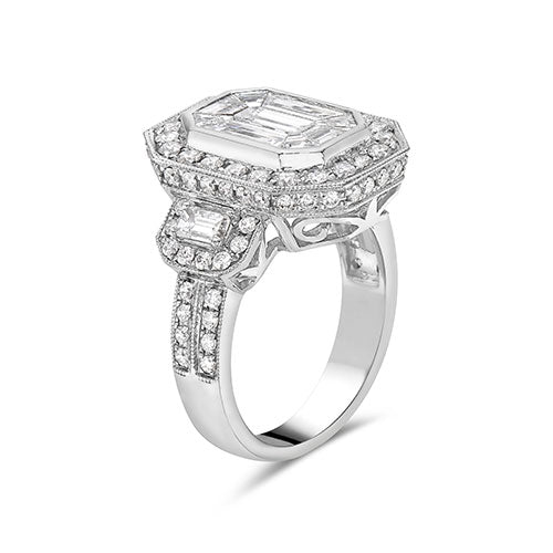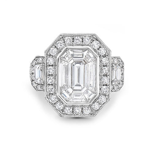 This dazzling 0.37 ctw octagon shaped white diamond ring is accented with 1.39 ctw octagon shaped white diamond and 1.13 ctw octagon shaped white diamond set in 18K White Gold Ring Wd Rd 1.13 ctw Size 7 with IGL # 2301072001