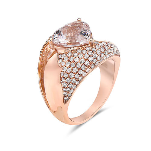 Morganite And Pink Diamond, 14K Rose Gold Ring