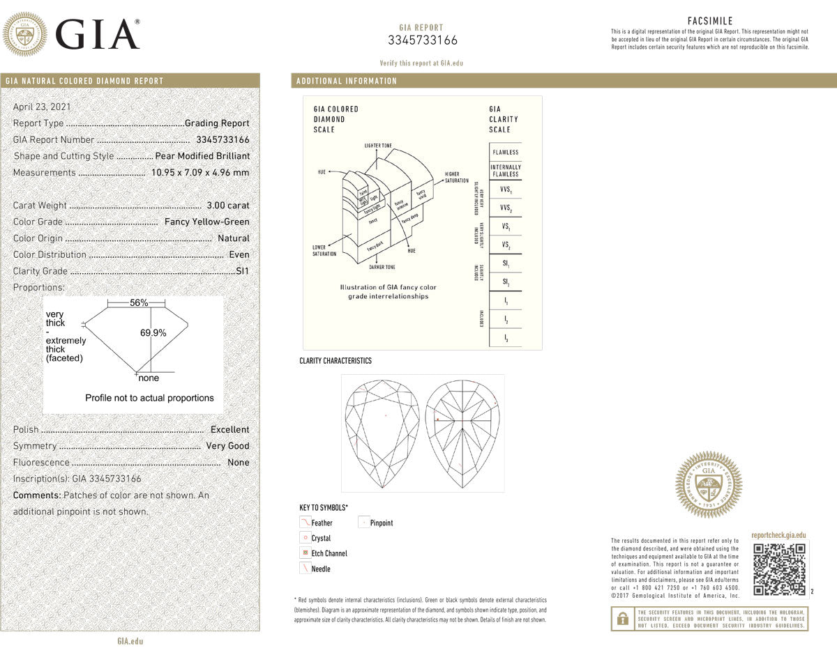 Looking for a unique and beautiful engagement ring? Look no further than this stunning pear-shaped diamond ring from Modani Jewels. The 3.00ct Fancy Yellow Green Diamond is absolutely breathtaking, and the 0.87ctw of white diamonds add the perfect amount of sparkle. This ring is made with 18K rose gold, and the pink diamond weighs in at 2.76ctw. With a GIA lab report, you can be sure that this ring is of the highest quality.
