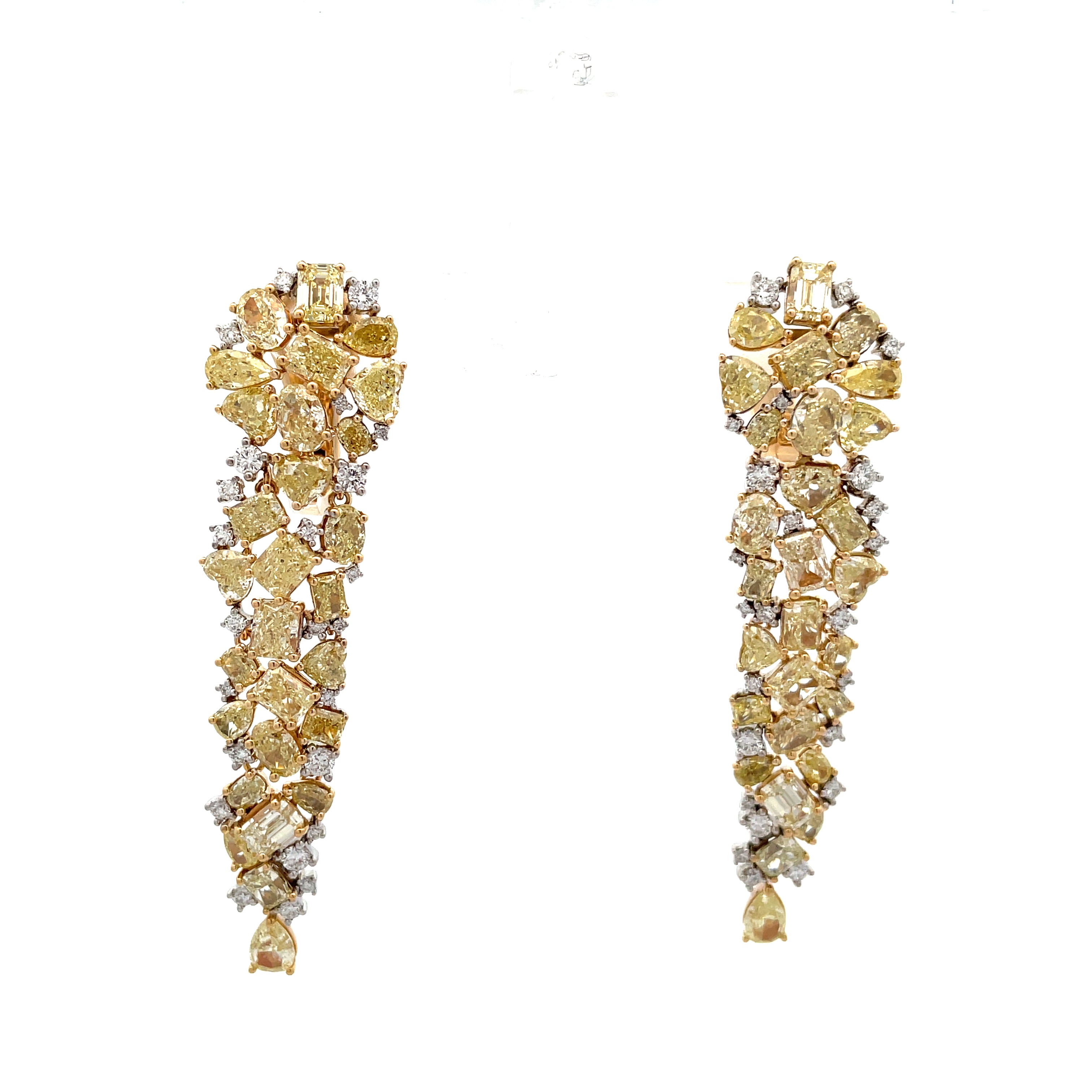18KY/W EARRING YELLOW DIAMOND FANCY 11.88 CT.,WHITE DIAMOND (MIX SHAPE) 0.80 CT.
