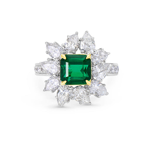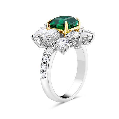 Emerald And White Diamond, 18K Two Tone Gold Ring