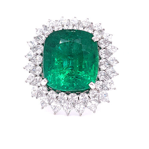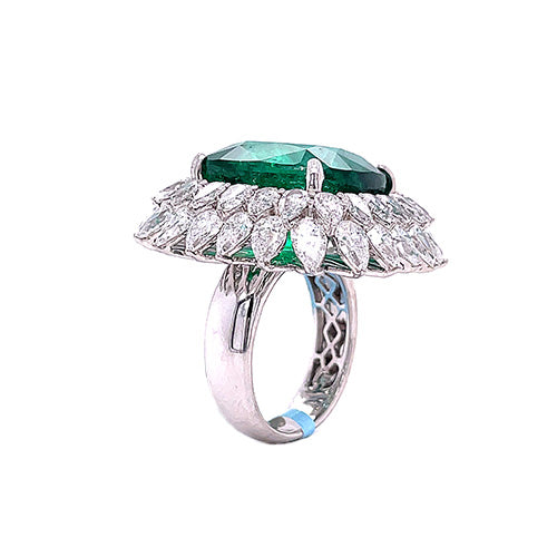 Emerald And White Diamond, 18K White Gold Ring – Modani Jewels