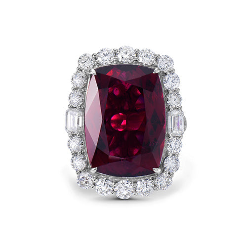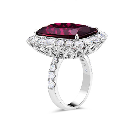 Rubellite Tourmaline And White Diamond, 18K White Gold Ring