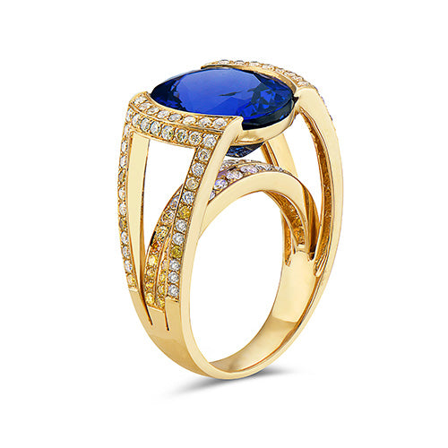 Tanzanite And Yellow and White Diamond, 18K Yellow Gold Ring – Modani Jewels