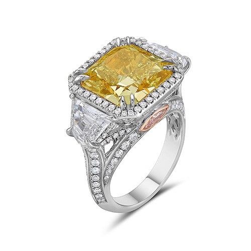 Fancy Intense Yellow Cushion cut White Diamond 18K, Two Tone and Pink – Modani Jewels