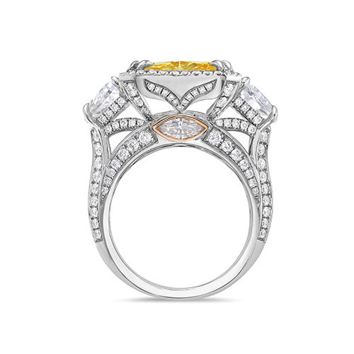 Fancy Intense Yellow Cushion cut White Diamond 18K, Two Tone and Pink Diamond Ring