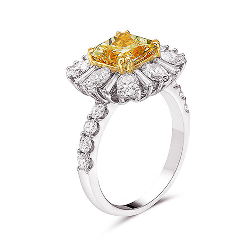 Yellow Cushion Diamond And White Diamond, 18K Two Tone Gold Ring