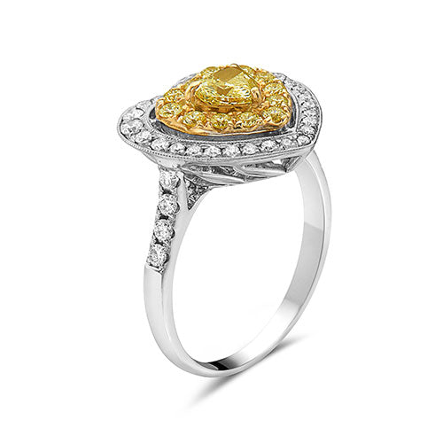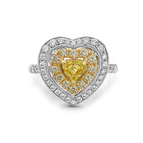 Yellow Diamond Heart And White Diamond, 14K Two Tone Gold Ring