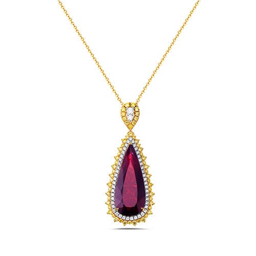 Cruziero Rubellite, Rubellite Tourmaline And Yellow And White Diamond, 18K Yellow Gold Necklace
