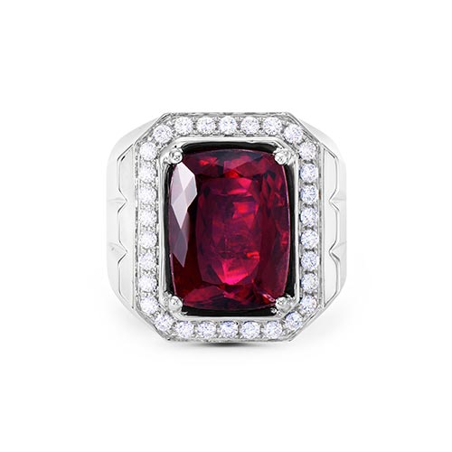 Rubellite Tourmaline And White Diamond, 18K White Gold Ring