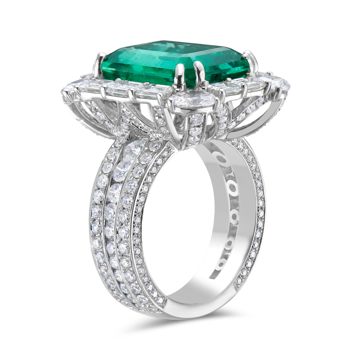 Modani Jewels 8.43 Emerald Octagon & 4.71ctw White Diamond Round 18K White Gold Ring Size 7