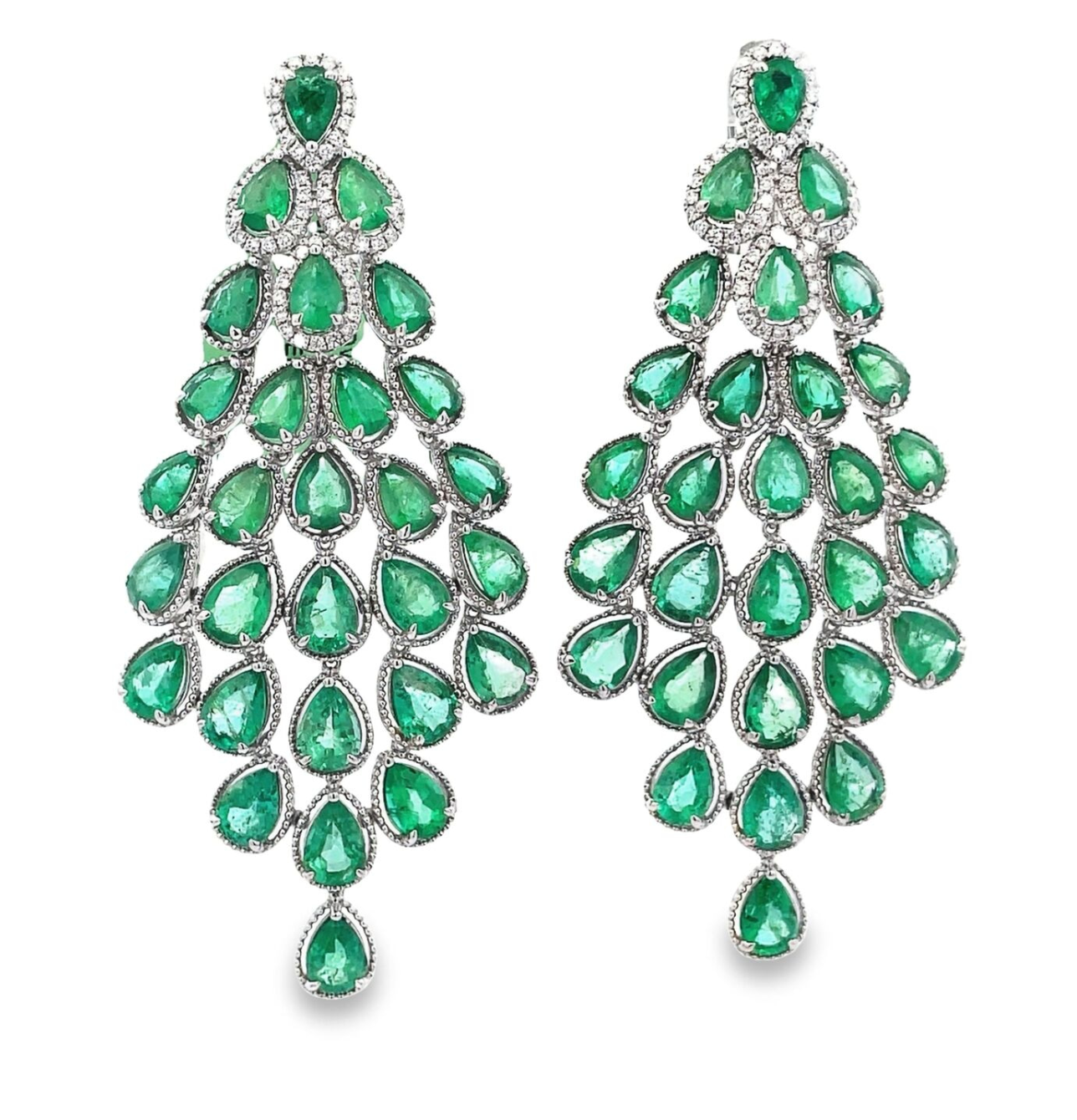 Pear Shaped Emerald 14k White Gold White Diamond Earring