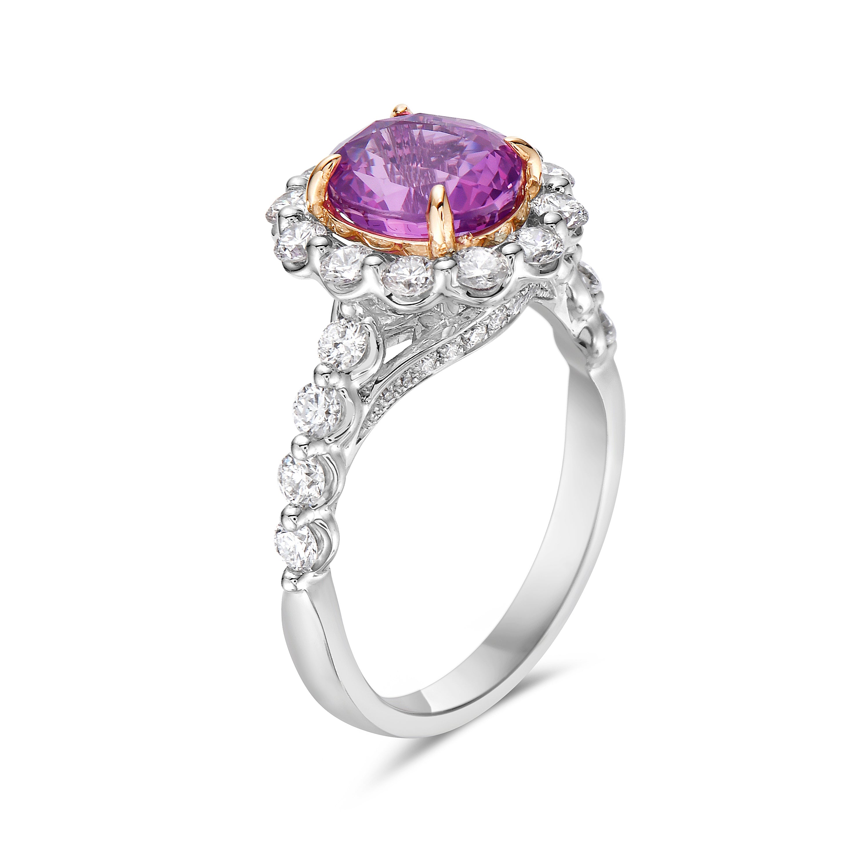 Pink Sapphire Oval White Diamond 18k Two Tone Gold Ring