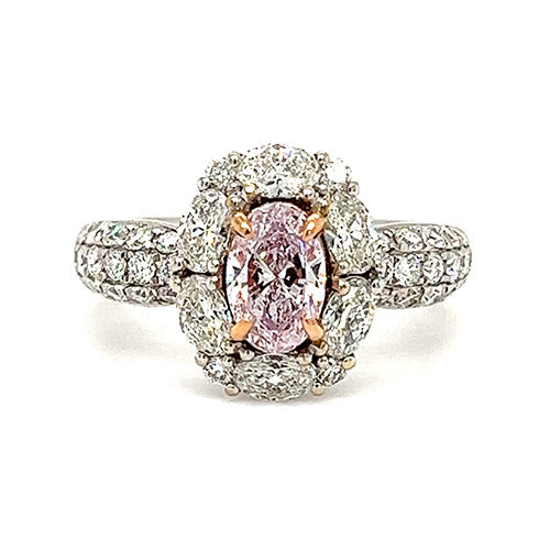 Pink Diamond Oval and White Diamond 18K 2 Tone Gold Natural Light Pink RING