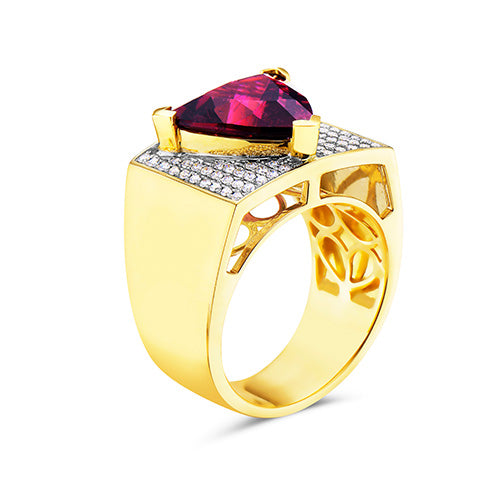 Rubellite Tourmaline And White Diamond, 18K Yellow Gold Ring