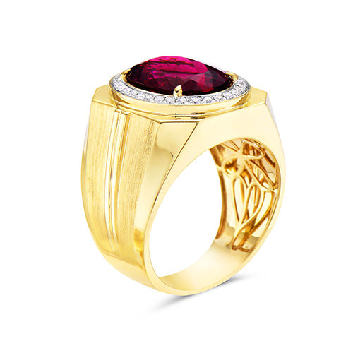 Rubellite Tourmaline And White Diamond, 18K Yellow Gold Ring