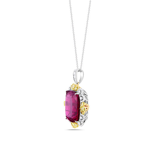 Rubellite Tourmaline, Yellow And White Diamond, 18K Two Tone Gold Necklace