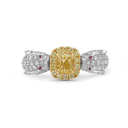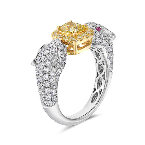 Ruby And Yellow And White Diamond, 18K Two Tone Gold Ring