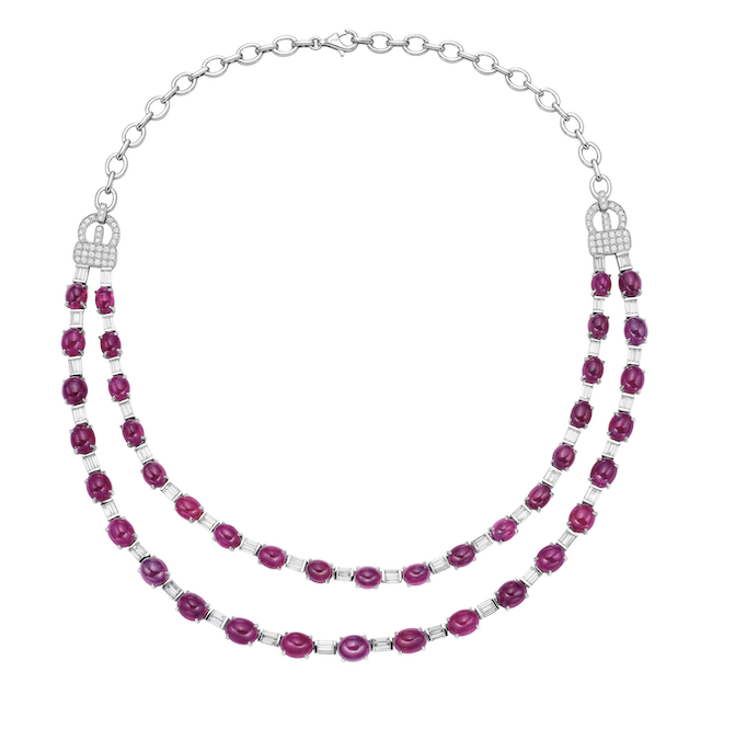 Ruby Oval White Diamond Round White Gold Necklace – Modani Jewels