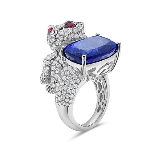 Tanzanite And Ruby And White Diamond, 18K White Gold Ring