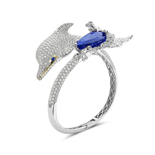 Tanzanite And Sapphire And White Diamonds, 18K White Gold Bracelet