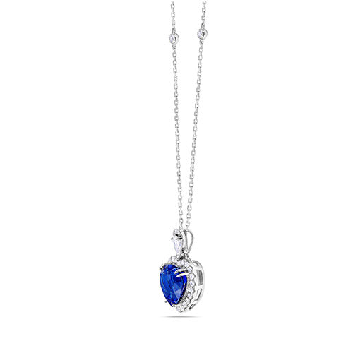 This gorgeous 5.76 ctw heart shaped Tanzanite necklace is accented with 0.71 ctw round white diamonds set in 18K white gold