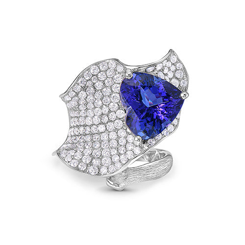 Tanzanite Heart And White Diamond, 18K Yellow Gold Ring