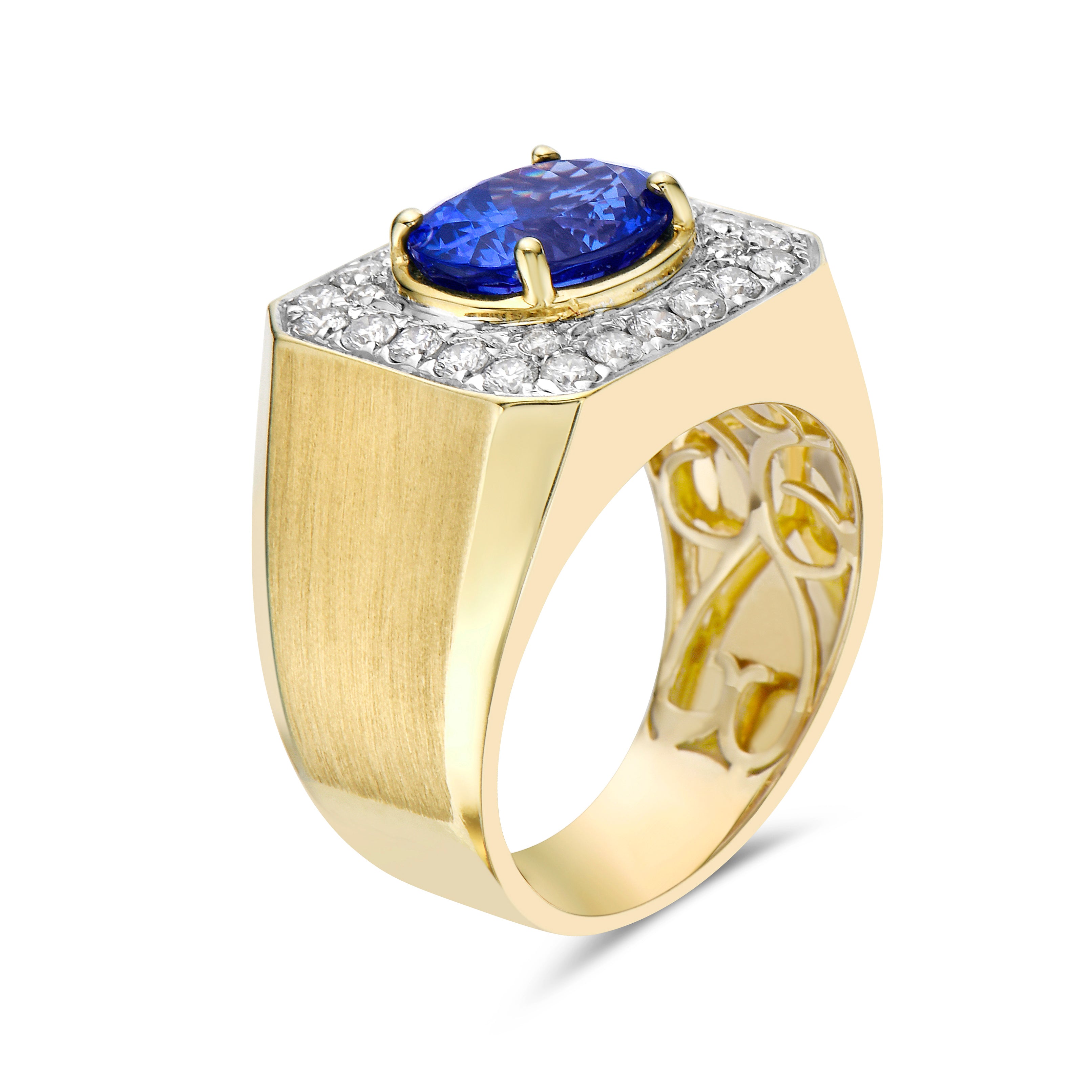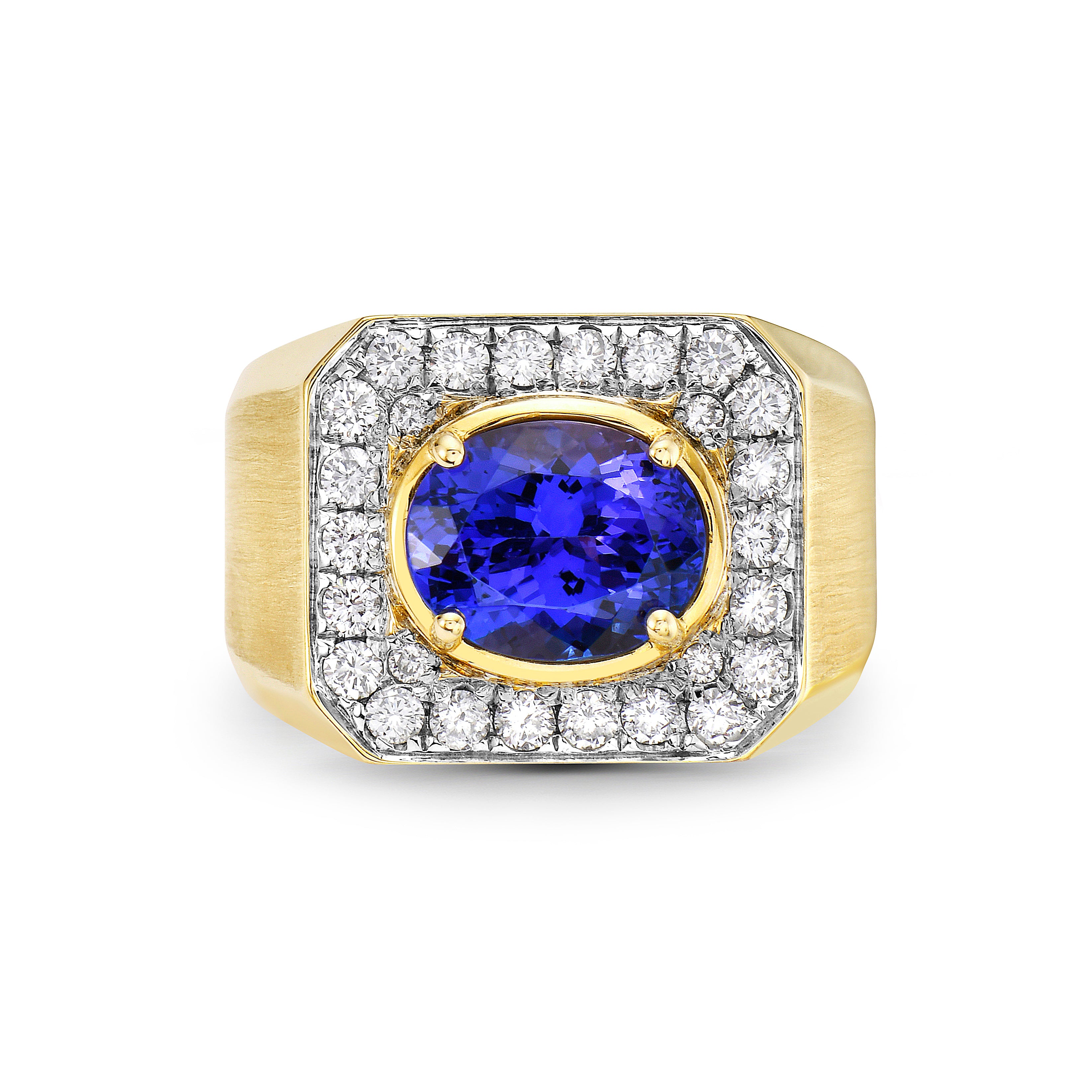 Tanzanite Oval White Diamond Yellow Gold Ring
