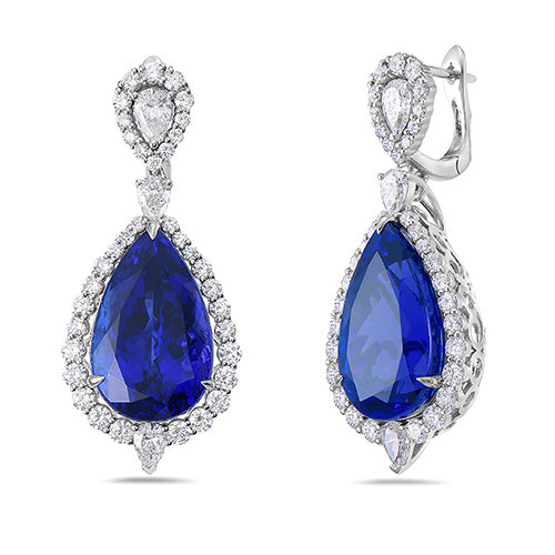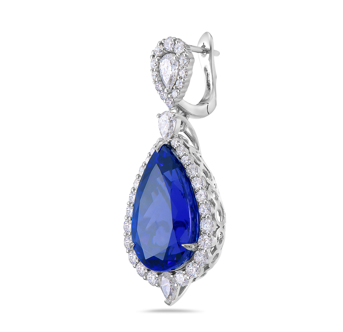 Tanzanite Pear And White Diamond, 18K White Gold Earrings – Modani Jewels