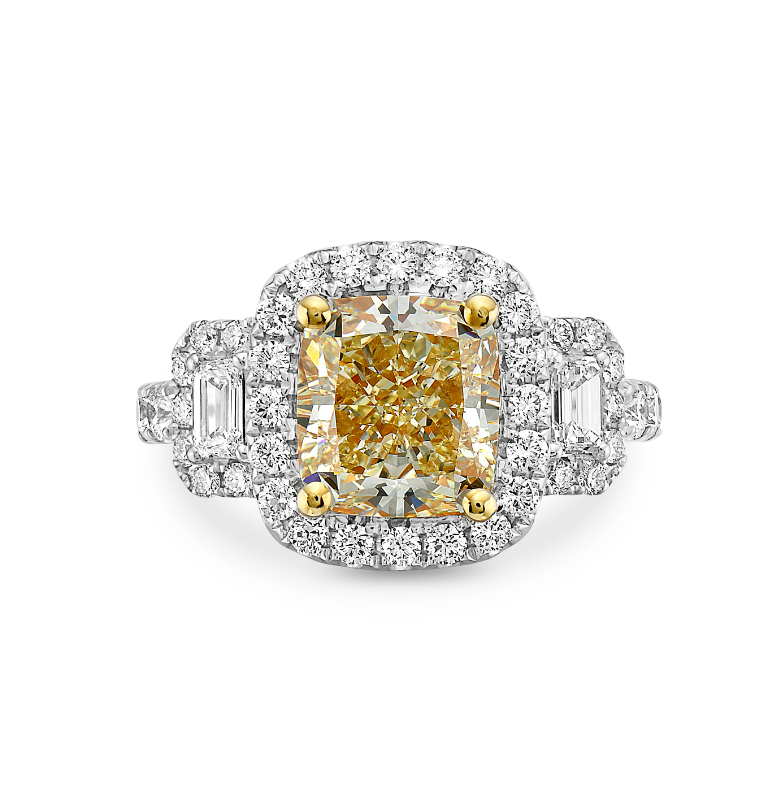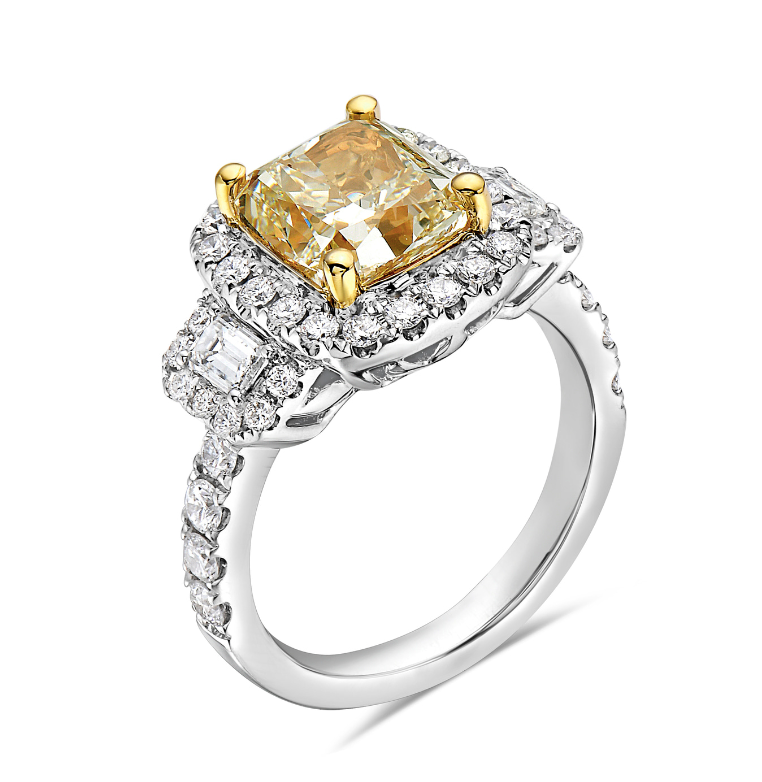 cushion diamond in a vintage gold setting, a lab grown diamond ring or a classic round