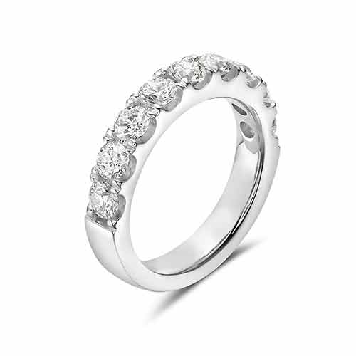 This intricate 1.76 ctw round white diamond ring band is set in 18K white gold