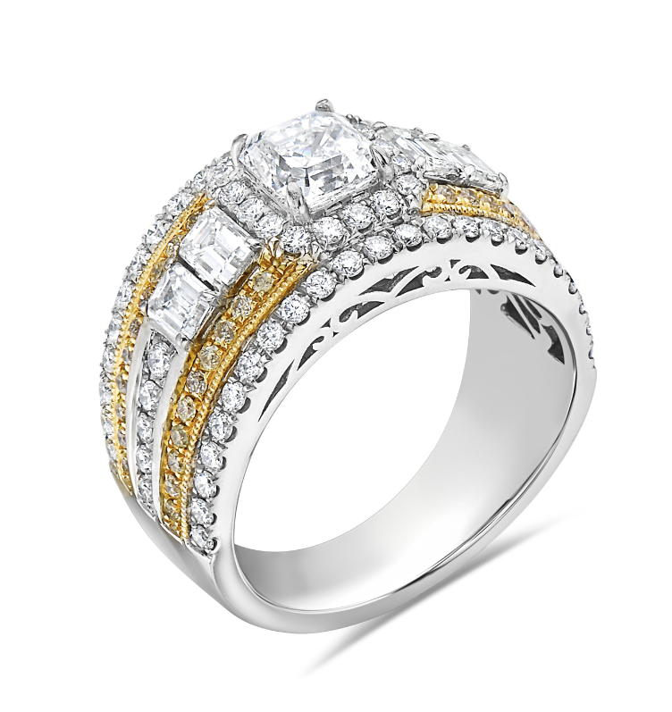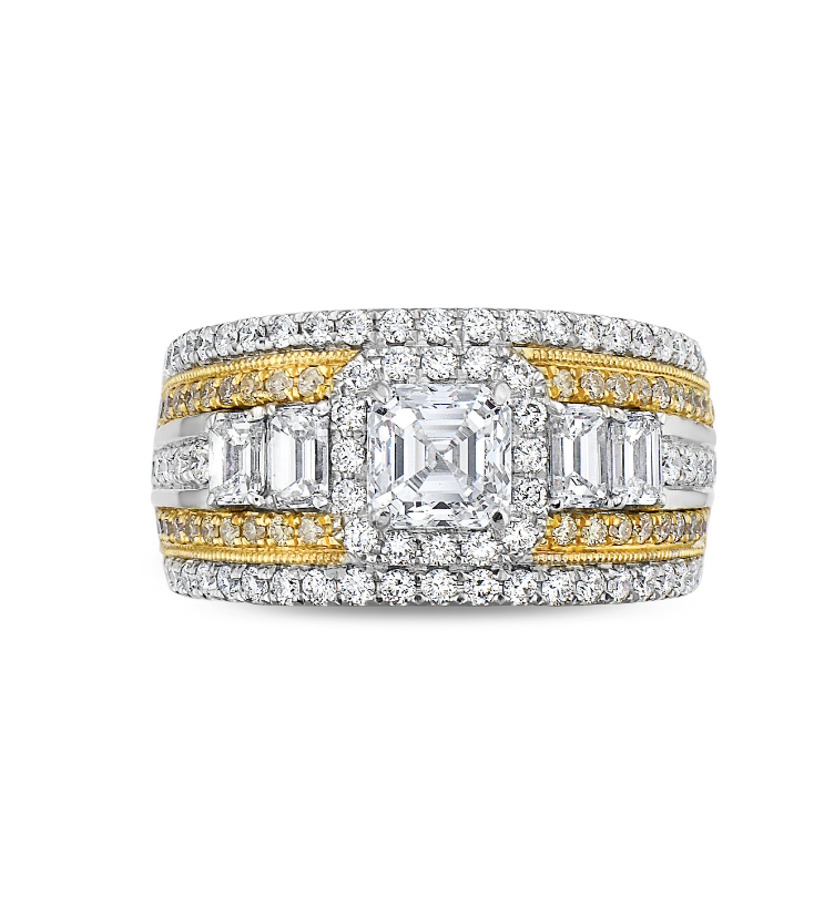 Yellow And White Diamond VVS2 18k 2 Tone Gold Diamond Ring