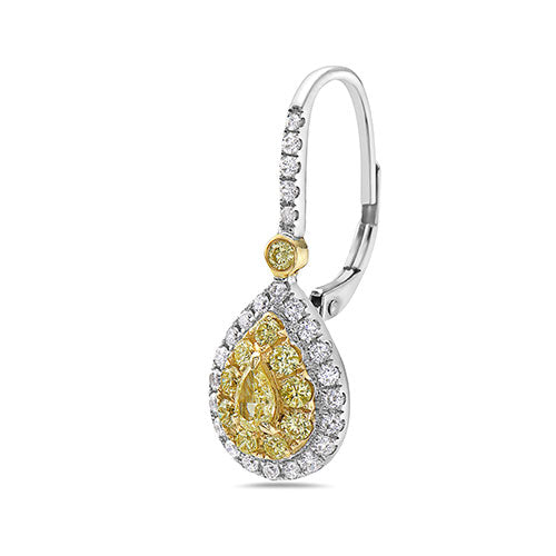 Yellow Diamond Pear And White And Yellow Diamond, 14K Two Tone Gold Earrings